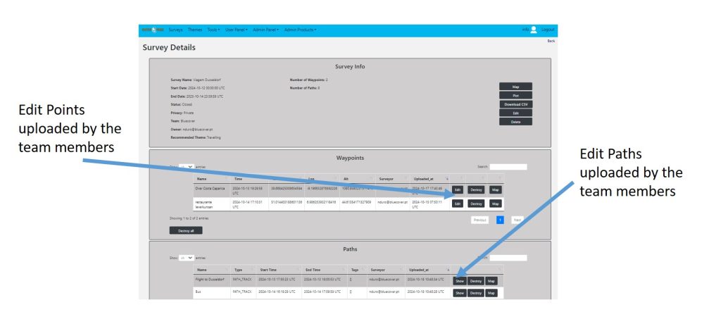 Data Management: the team leader can edit or adjust the data uploaded at the gps enterprise backoffice.