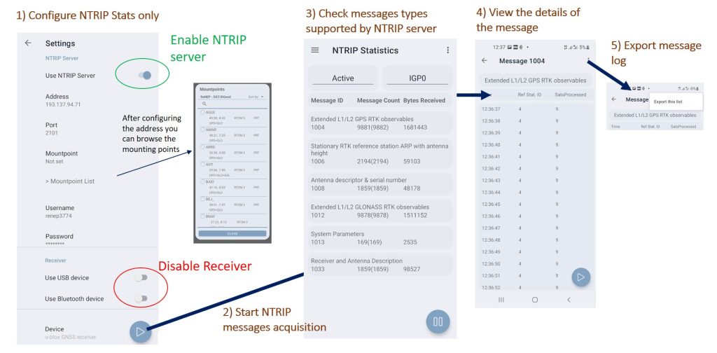 2. NTRIP Stats only: this mode aims to evaluate or test your regional NTRIP infrastructures by decoding and identifying the type of messages that are being received.
